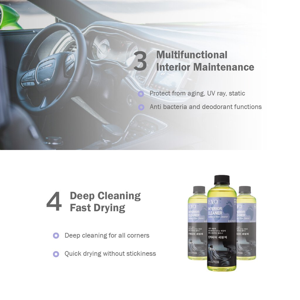 Nước Làm Sạch Nội Thất: Bảo vệ khỏi lão hóa, tia UV và tĩnh điện. Chức năng kháng khuẩn và khử mùi.