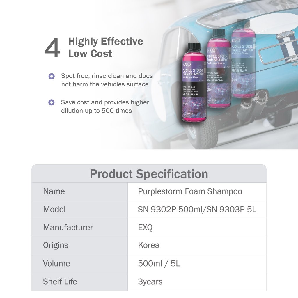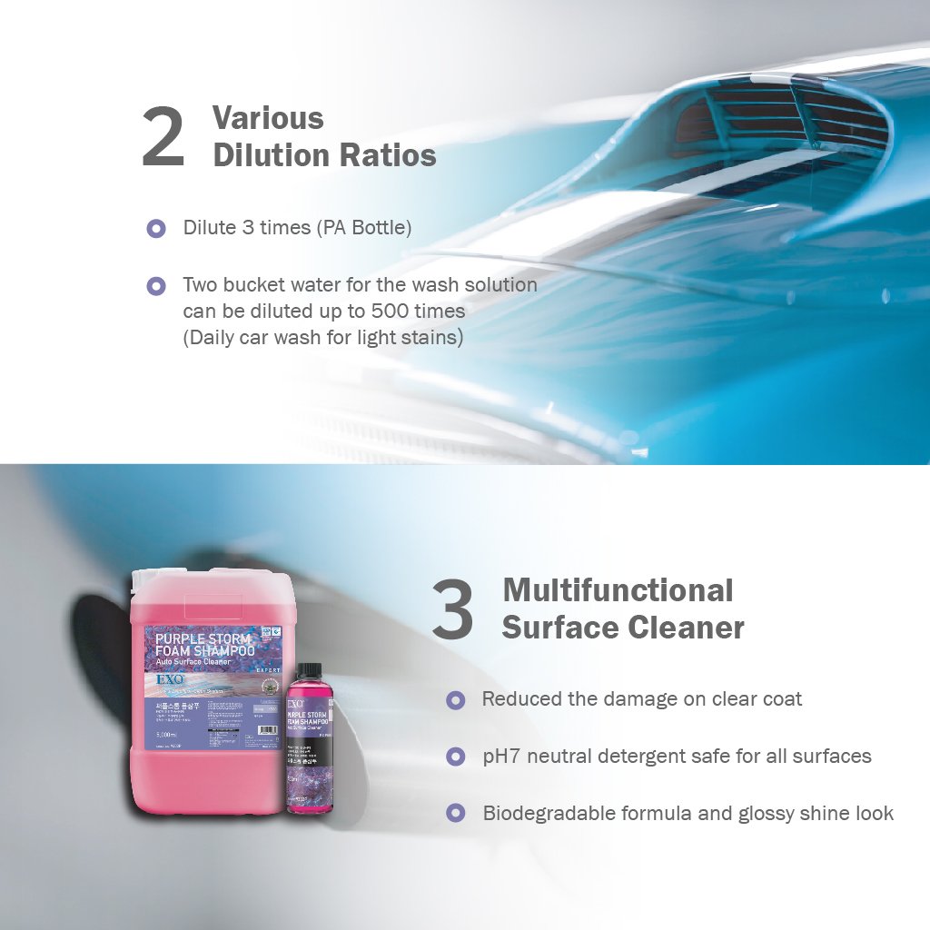 Purple Storm: Chất tẩy rửa trung tính pH7 an toàn cho mọi bề mặt. Công thức phân hủy sinh học, mang lại độ bóng sâu và bền.