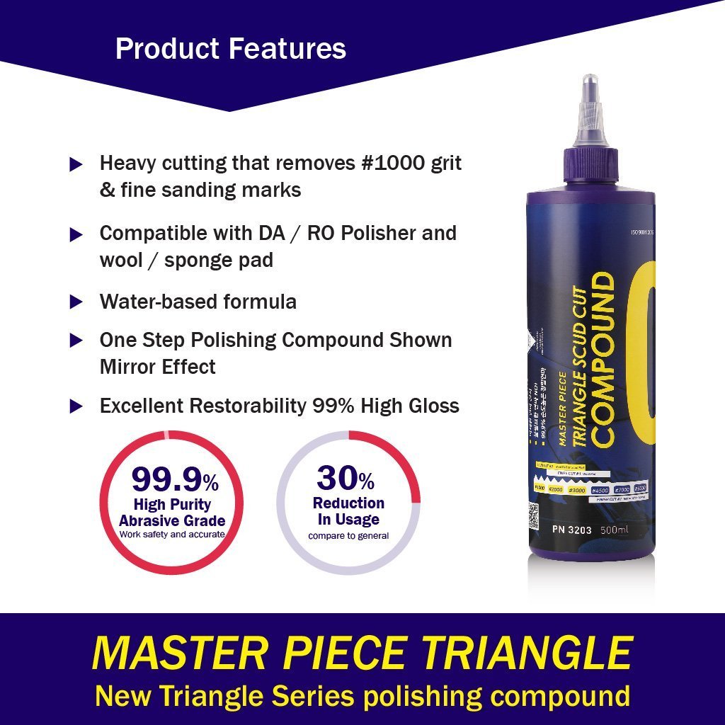Scud-Cut Compound #0: Có khả năng loại bỏ vết chà nhám #1000 grit và các vết xước mịn. Tương thích với máy đánh bóng DA/RO và pad len/mút.
