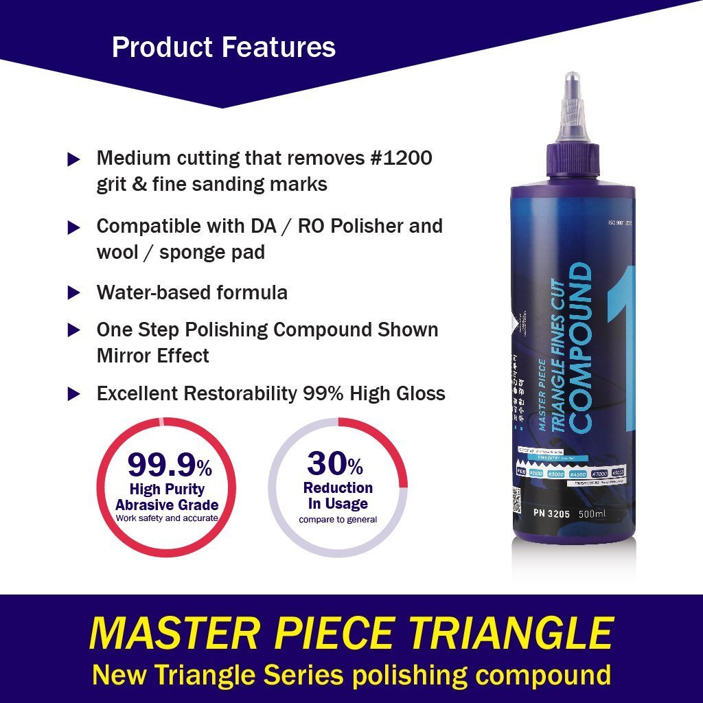 2500 Perfect Polish Compound: Loại bỏ vết chà nhám 1500 grit, vết nước và lớp oxy hóa. Tạo ra ít vết xoáy khi đánh bóng, đồng thời mang lại độ bóng cao.