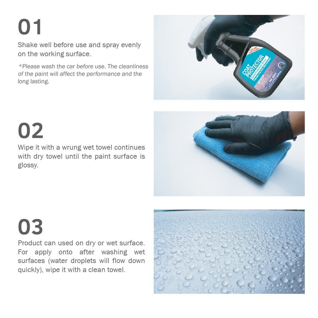 Chai xịt đánh bóng nhanh đột phá. Chỉ mất 10 phút để hoàn thiện toàn bộ xe. Tăng cường độ bóng sáng. Hiệu ứng kháng nước giúp chống bám bẩn và tự làm sạch.