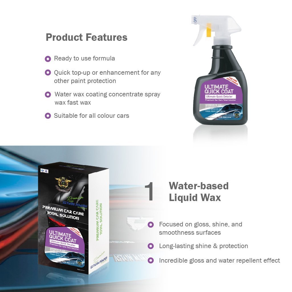 Dung dịch sáp gốc nước được phát triển để tăng cường độ bóng, sáng và mịn cho bề mặt. Dùng để bổ sung nhanh hoặc tăng cường lớp bảo vệ sơn. Sáp nước dạng xịt đậm đặc tạo lớp phủ bảo vệ.