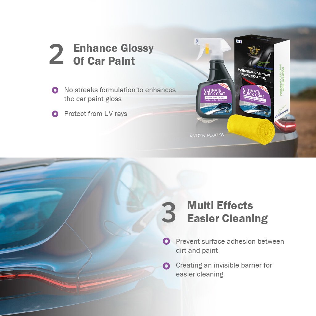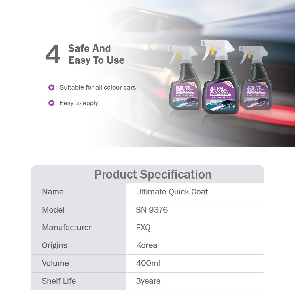 Ultimate Quick Coat Expert: Công thức không để lại vệt, tăng cường độ bóng và bảo vệ sơn xe khỏi tia UV. Sáp nước gốc nước giúp bề mặt xe bóng, sáng và mịn hơn.