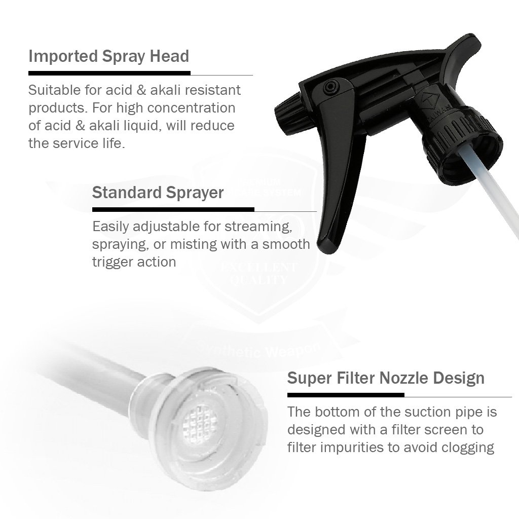 Dễ dàng điều chỉnh chế độ phun tia, phun sương hoặc dạng hơi với thao tác bóp cò mượt mà. Đầu ống hút được trang bị lưới lọc giúp loại bỏ tạp chất, ngăn ngừa tắc nghẽn.