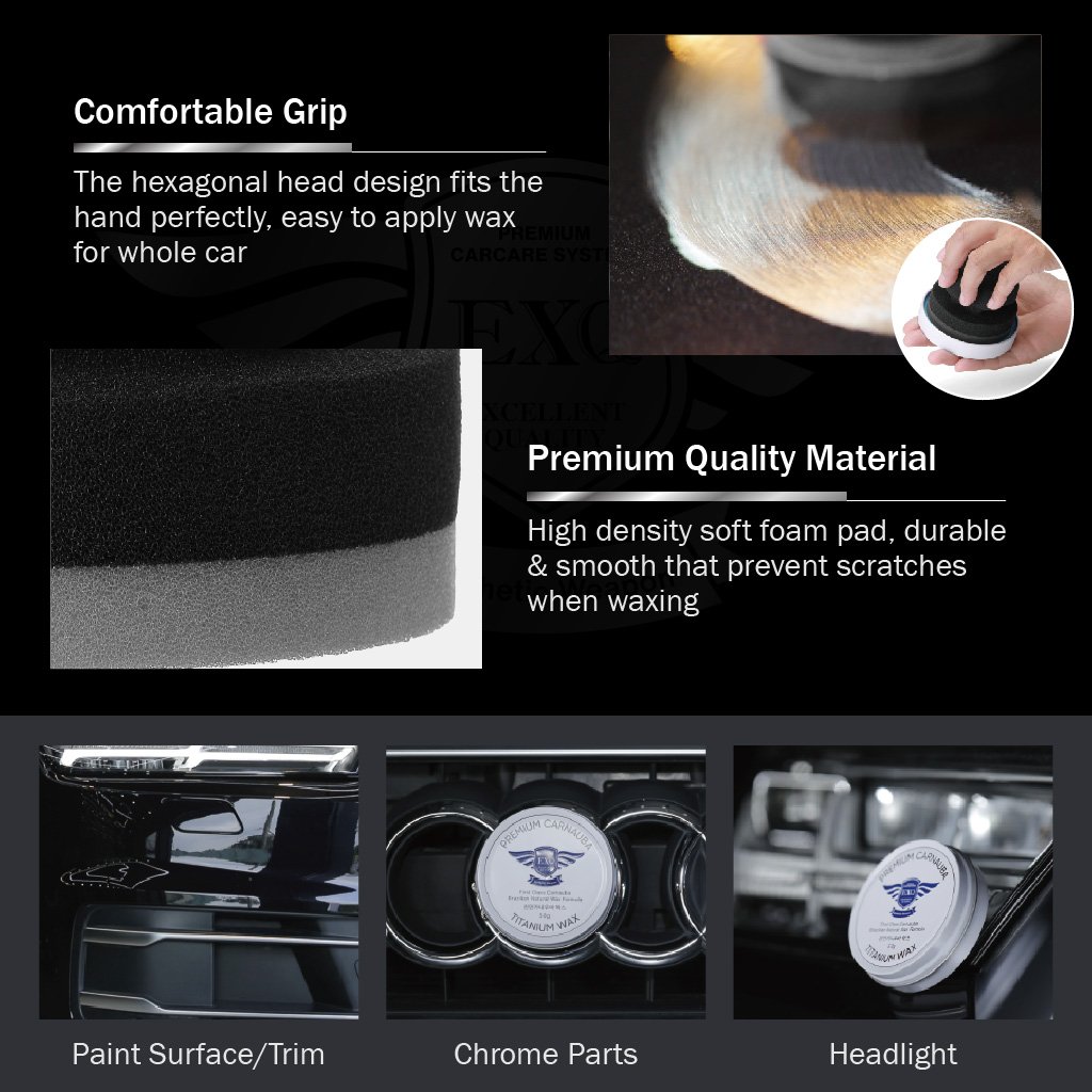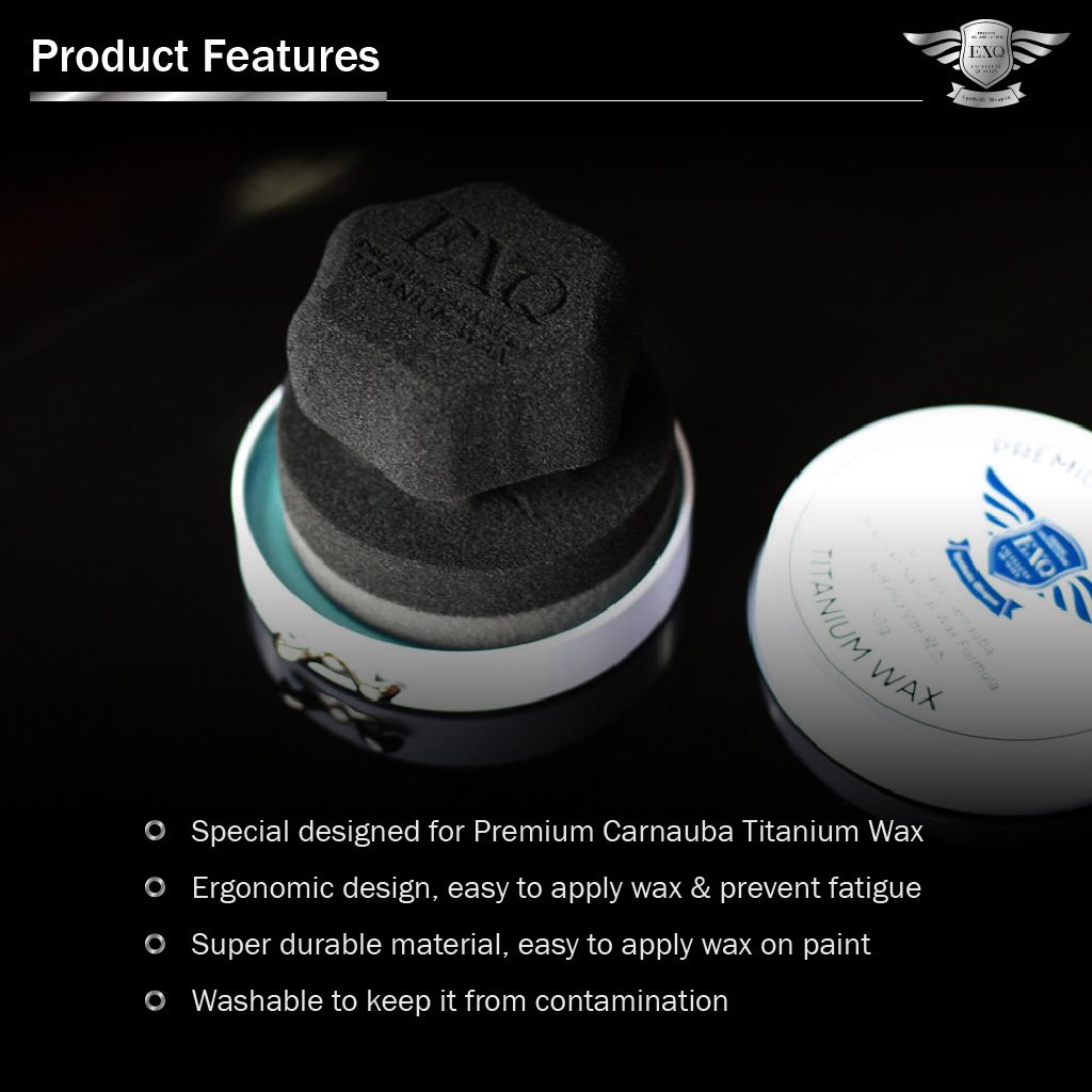 Được thiết kế đặc biệt cho sáp Carnauba Titanium cao cấp. Thiết kế công thái học, dễ dàng đánh sáp và giảm mỏi tay. Chất liệu siêu bền, giúp thoa sáp lên sơn dễ dàng. Có thể giặt để tránh bị nhiễm bẩn.