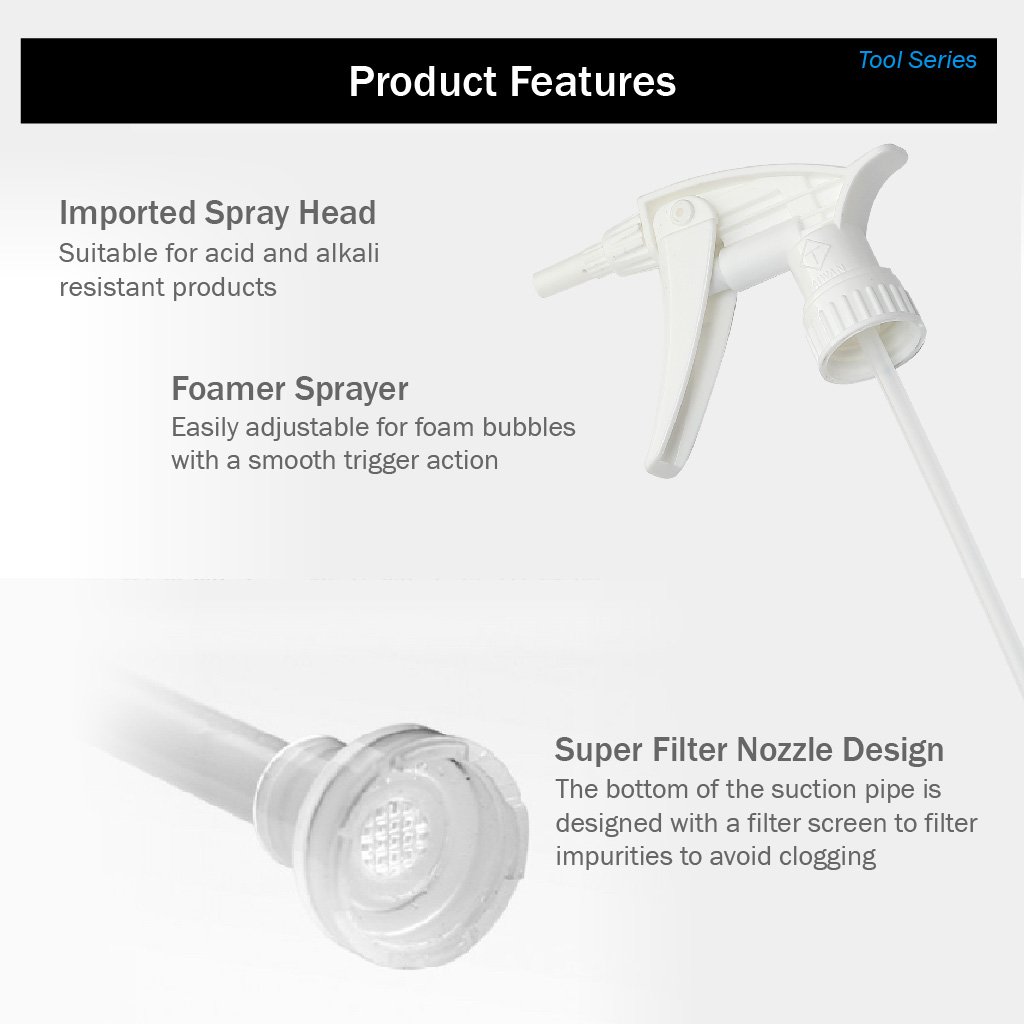✅ Bình xịt tạo bọt, phù hợp với các sản phẩm chống axit và kiềm.