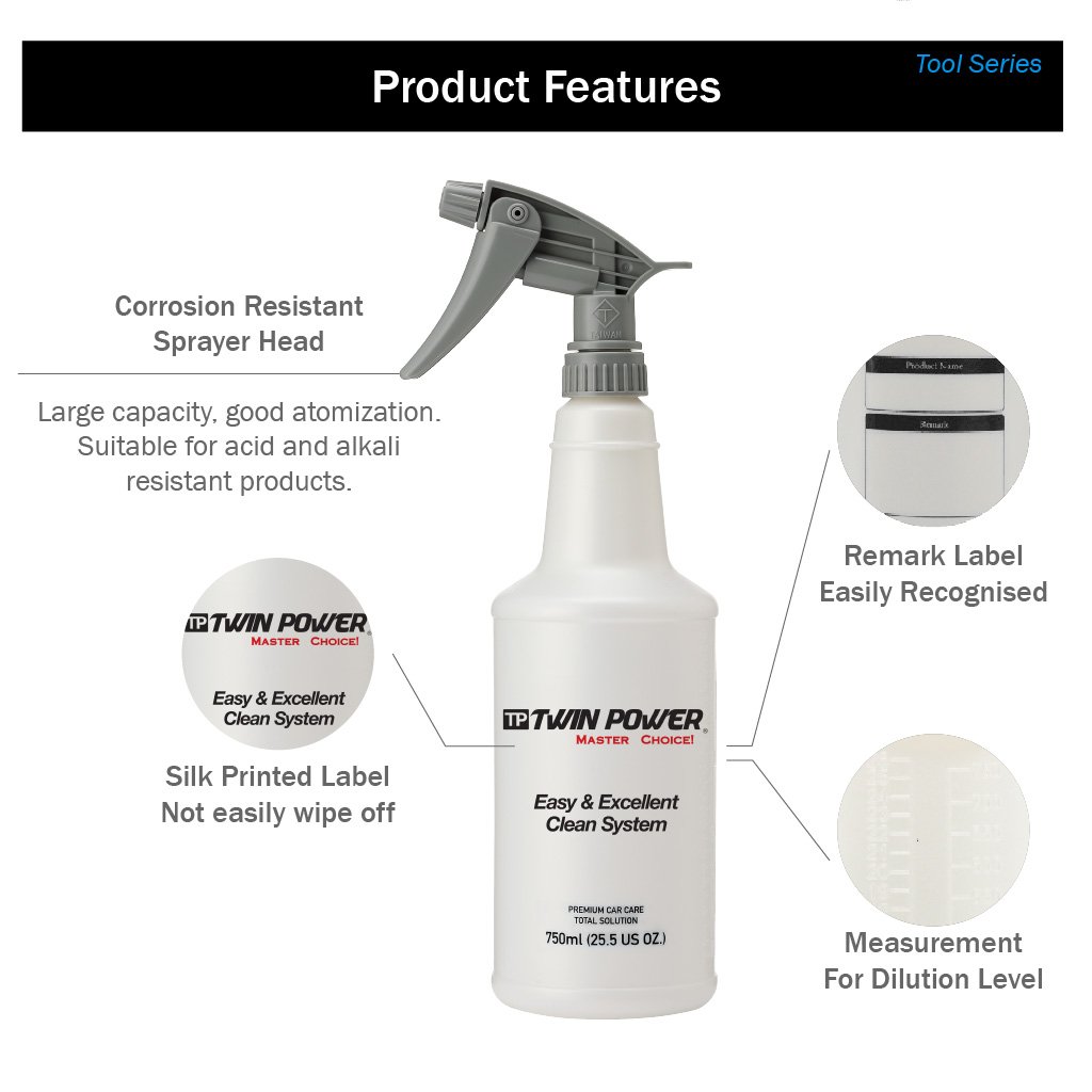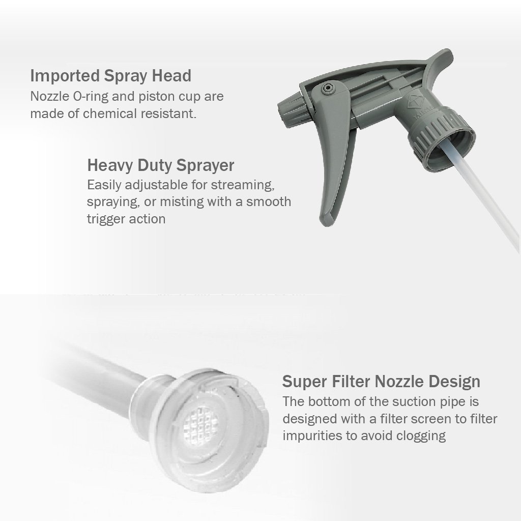 Thiết kế thông minh – Bình có nhãn ghi chú và vạch chia tỷ lệ pha loãng, giúp kiểm soát lượng dung dịch dễ dàng.