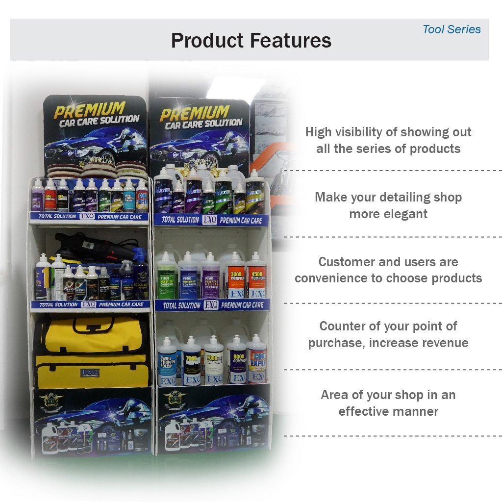 ✅ Tối ưu không gian trưng bày, giúp cửa hàng detailing gọn gàng và chuyên nghiệp hơn.