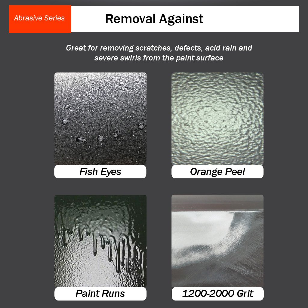 Hợp chất đánh bóng mạnh nhất với khả năng mài mòn nhanh từ nhẹ đến nặng. Loại bỏ vết chà nhám từ 1200 đến 2000 grit. Không chứa silicone và sáp. Lý tưởng để loại bỏ vết xước, khuyết điểm, tác hại của mưa axit và các vết xoáy nghiêm trọng trên bề mặt sơn.