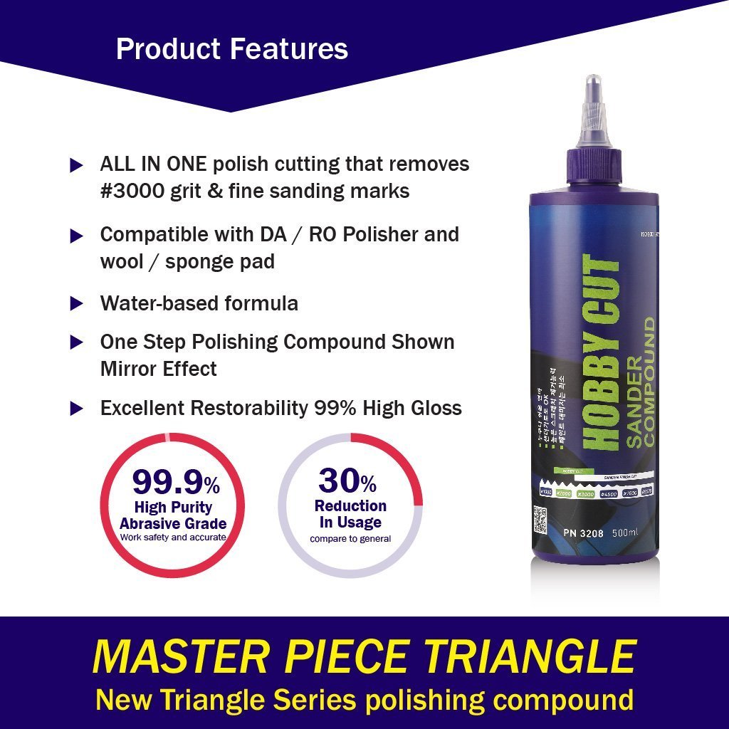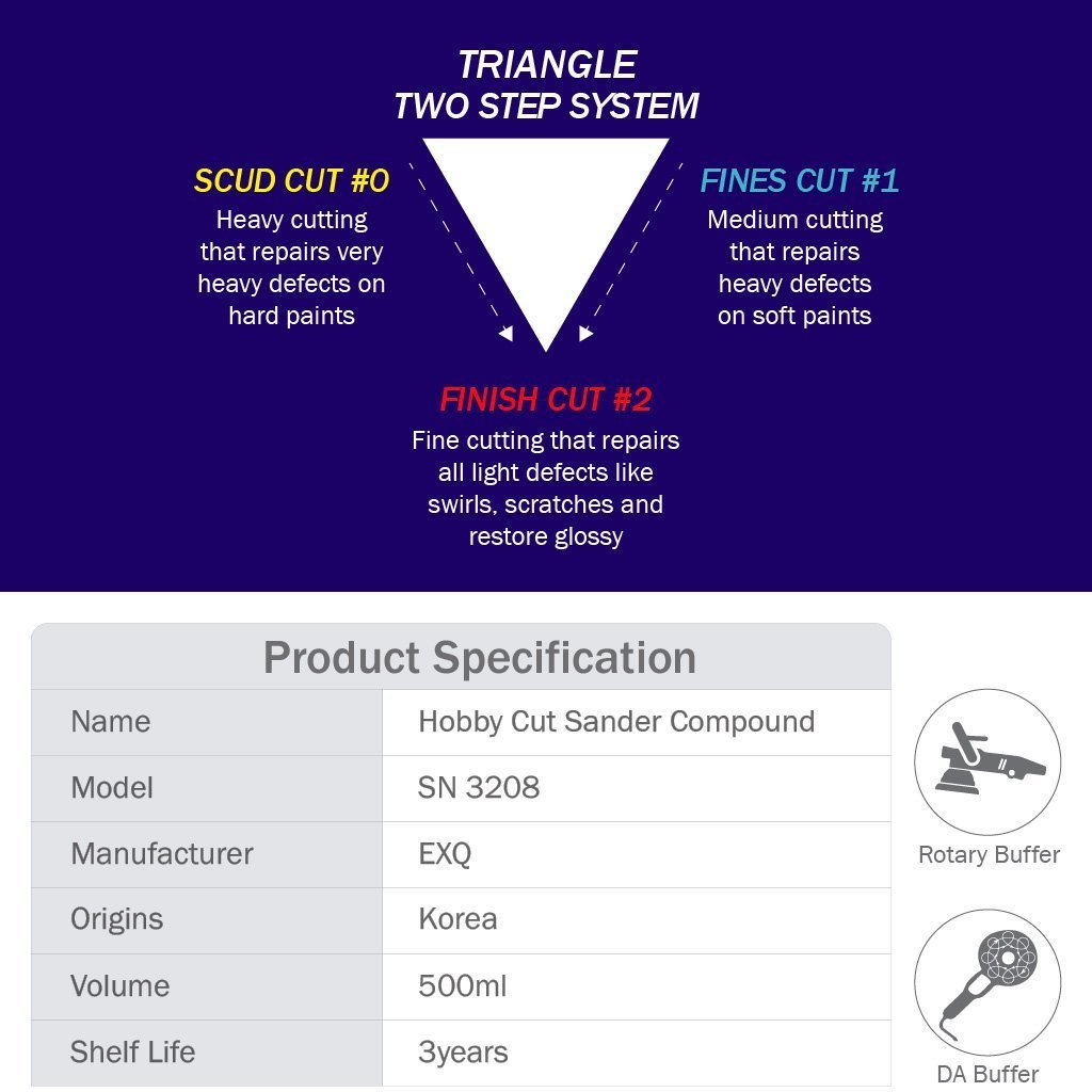 2500 Perfect Polish Compound: Loại bỏ vết chà nhám 1500 grit, vết nước và lớp oxy hóa. Tạo ra ít vết xoáy khi đánh bóng, đồng thời mang lại độ bóng cao.