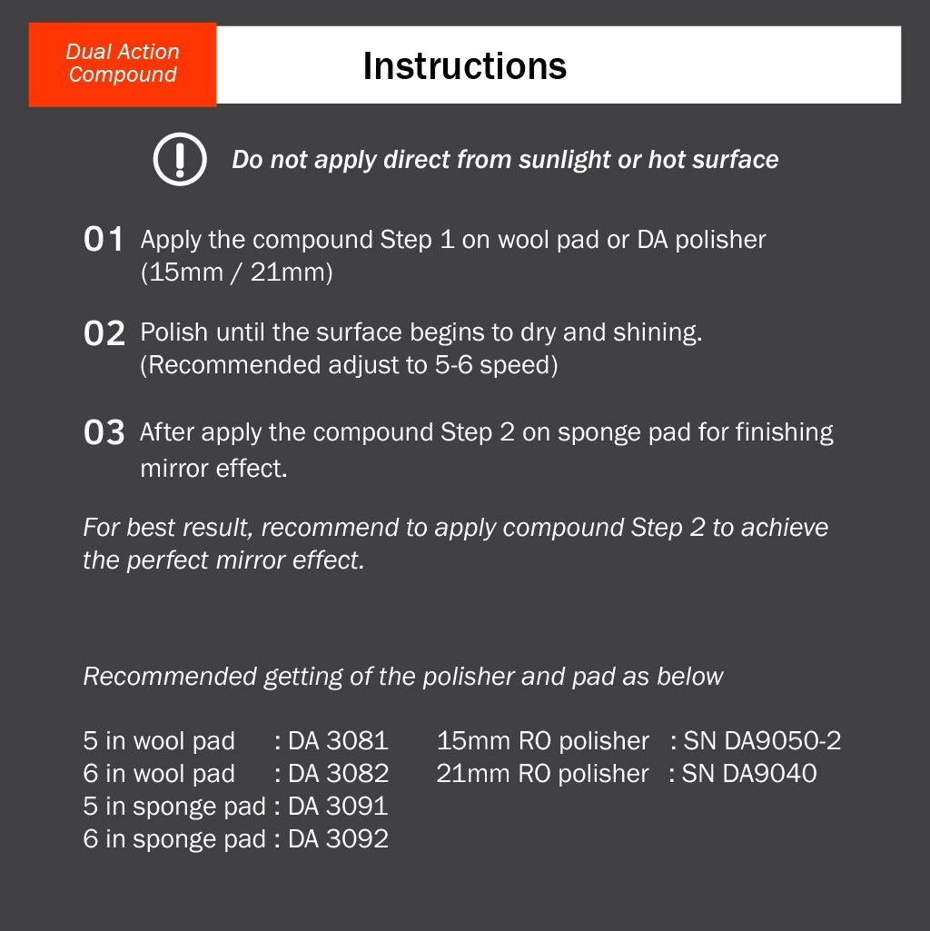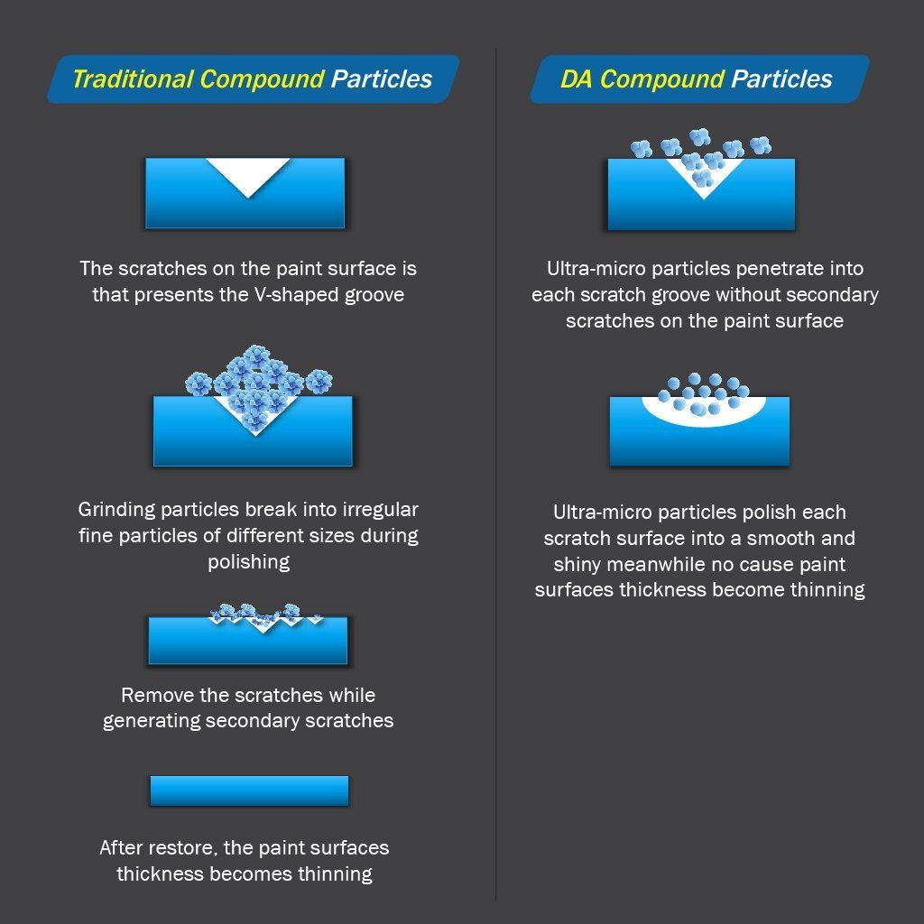 2500 Perfect Polish Compound: Loại bỏ vết chà nhám 1500 grit, vết nước và lớp oxy hóa. Tạo ra ít vết xoáy khi đánh bóng, đồng thời mang lại độ bóng cao.