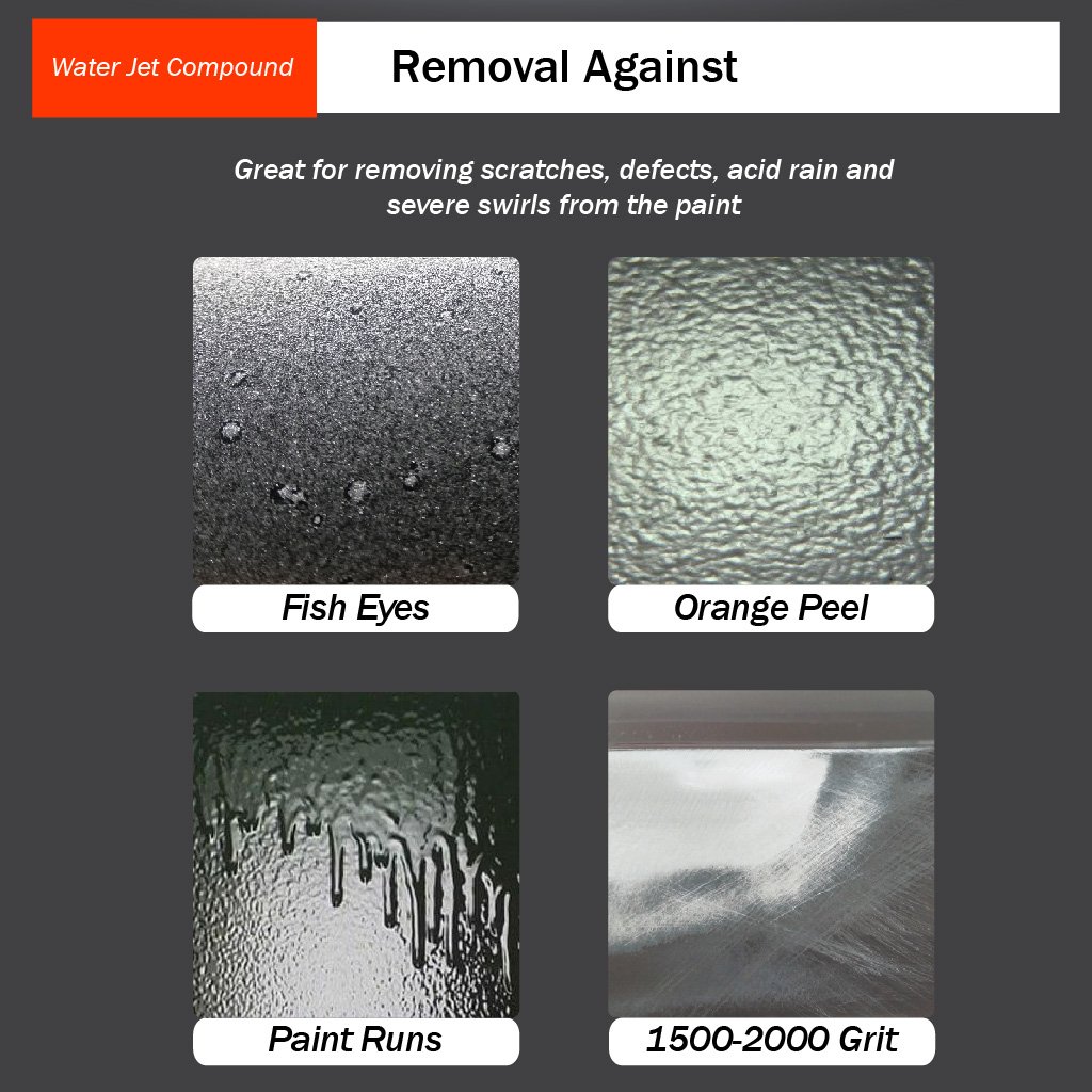 4500 Compound: Loại bỏ vết chà nhám 2000 grit, vết nước. Hiệu quả trong việc loại bỏ vết xước, vết xoáy, hiệu ứng hologram, vết nước và vết chà nhám trên bề mặt sơn.