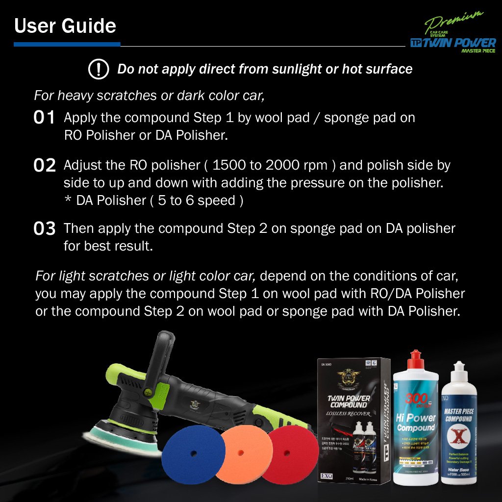 2500 Perfect Polish Compound: Loại bỏ vết chà nhám 1500 grit, vết nước và lớp oxy hóa. Tạo ra ít vết xoáy khi đánh bóng, đồng thời mang lại độ bóng cao.