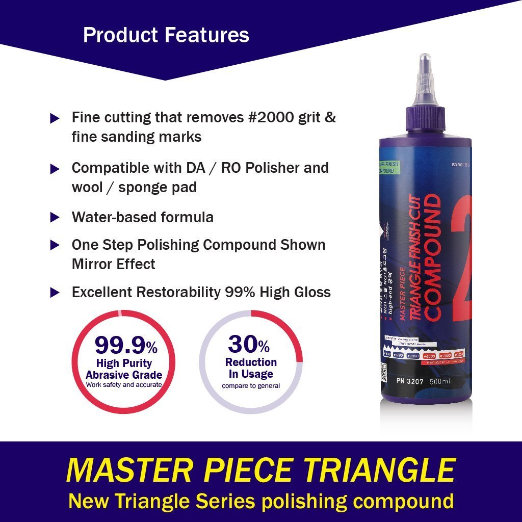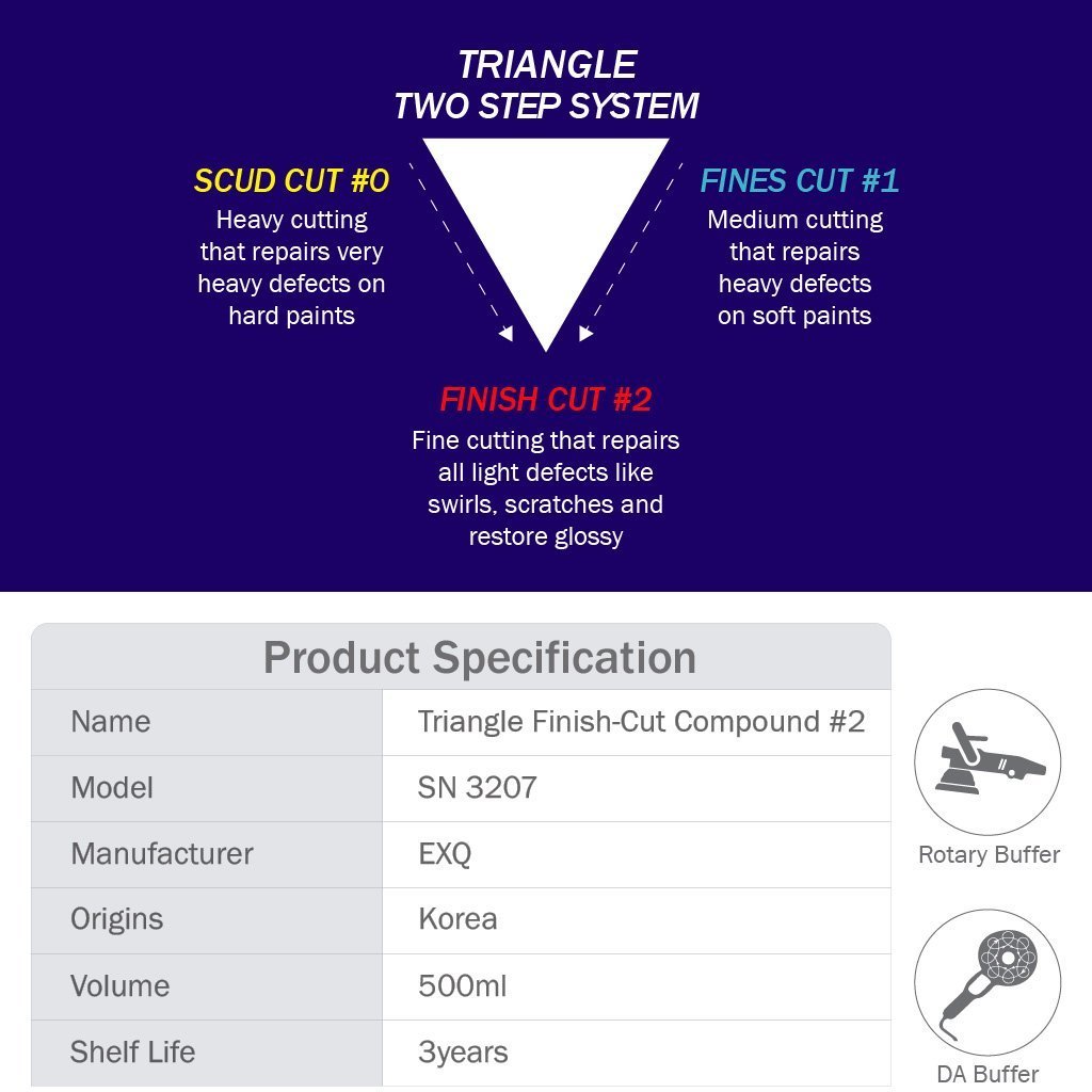 2500 Perfect Polish Compound: Loại bỏ vết chà nhám 1500 grit, vết nước và lớp oxy hóa. Tạo ra ít vết xoáy khi đánh bóng, đồng thời mang lại độ bóng cao.