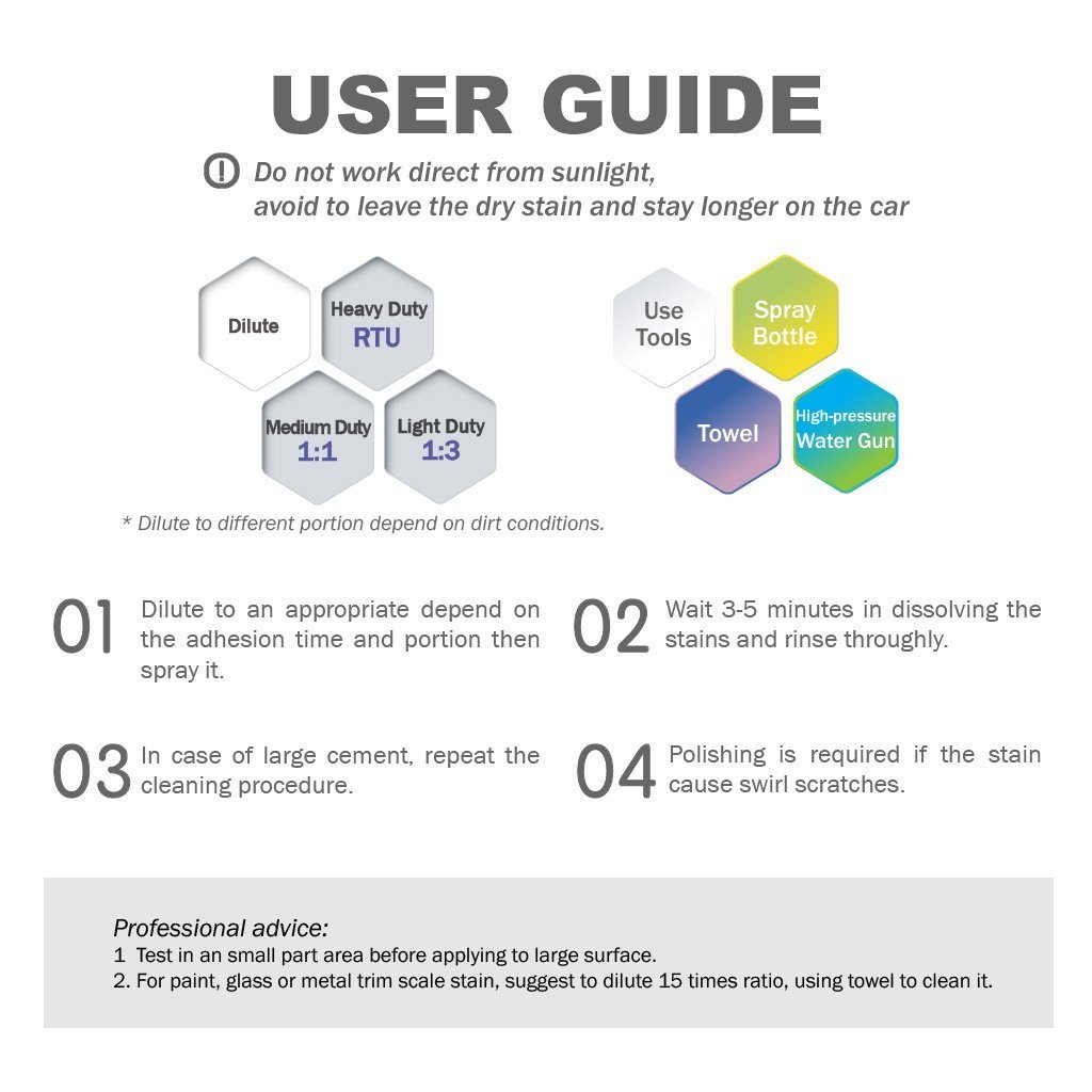 Nhanh chóng loại bỏ vết bẩn xi măng trên sơn. Công thức đậm đặc cao. Có thể pha loãng 1-3 lần. Tiết kiệm chi phí nhất. An toàn khi sử dụng trên sơn, kính hoặc viền kim loại.