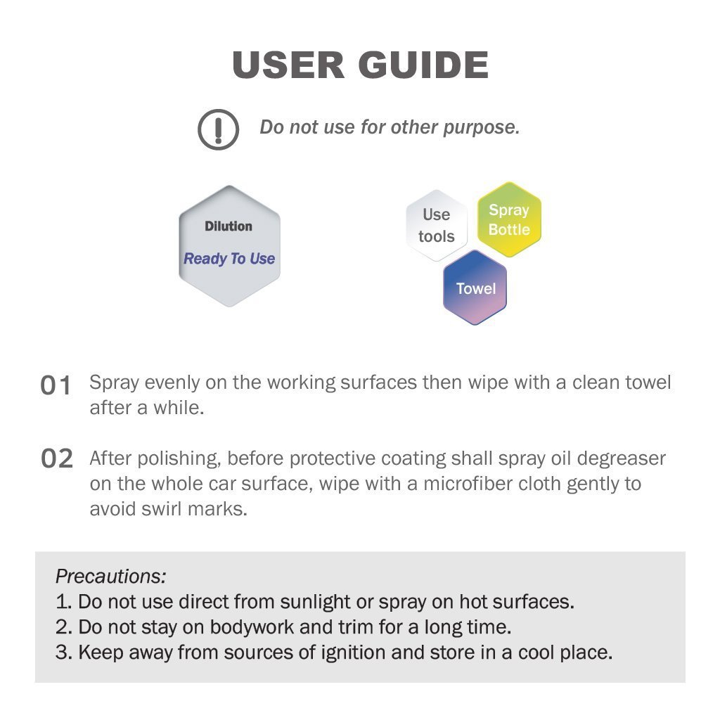 Dung môi gốc dầu giúp tẩy dầu mỡ sau khi đánh bóng một cách dễ dàng. Cung cấp khả năng loại bỏ dầu nhanh chóng, hiệu quả. An toàn khi sử dụng trên sơn, kính, và các loại viền trang trí khác nhau. Ngăn ngừa hiện tượng mờ sơn và vết ố trắng sau khi sử dụng.