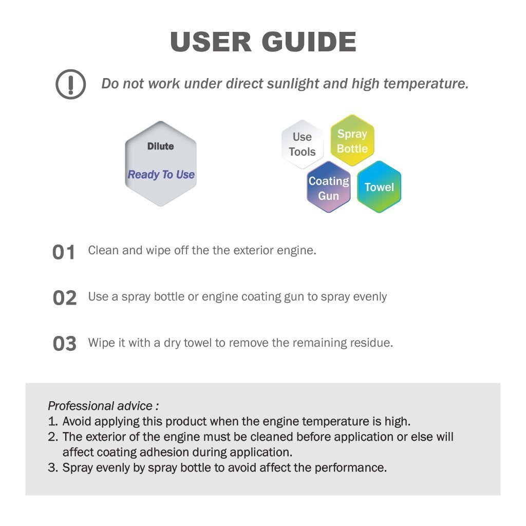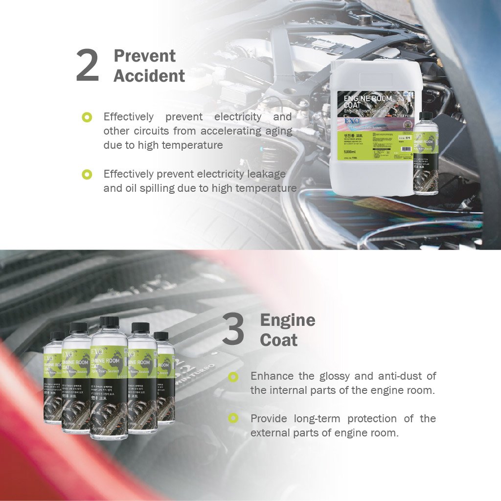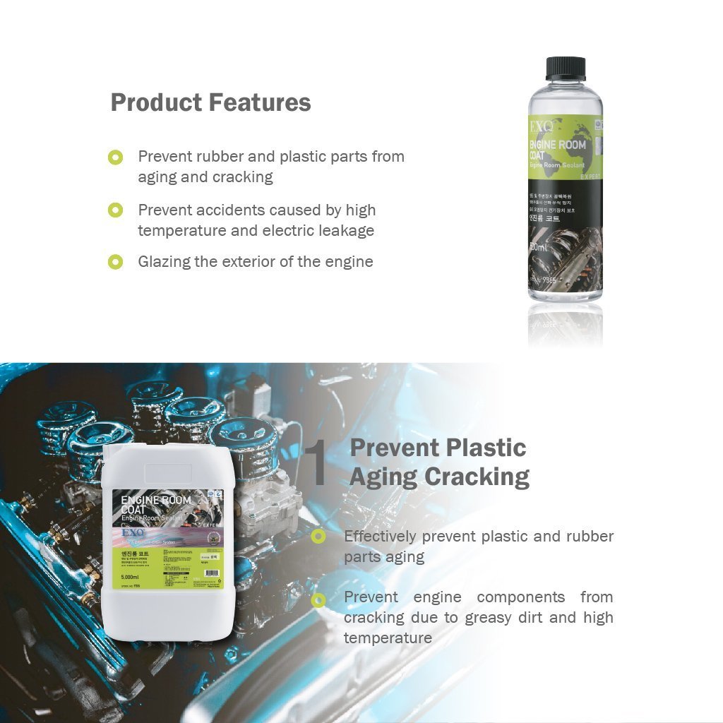 Ngăn chặn cao su và nhựa bị lão hóa, nứt gãy. Tạo độ bóng cho bề mặt động cơ. Hiệu quả ngăn ngừa rò rỉ điện và tràn dầu do nhiệt độ cao. Tăng độ bóng và khả năng chống bám bụi.