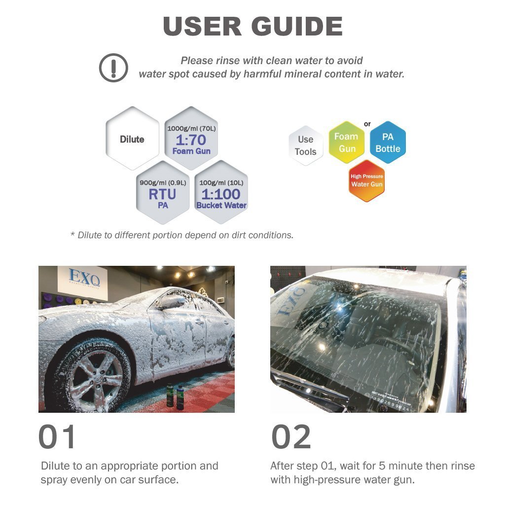 Giảm trầy xước trên bề mặt sơn do rửa xe. Có thể pha loãng tới 100 lần tùy theo mức độ bẩn. Dung dịch rửa xe có độ pH trung tính, an toàn cho mọi bề mặt.