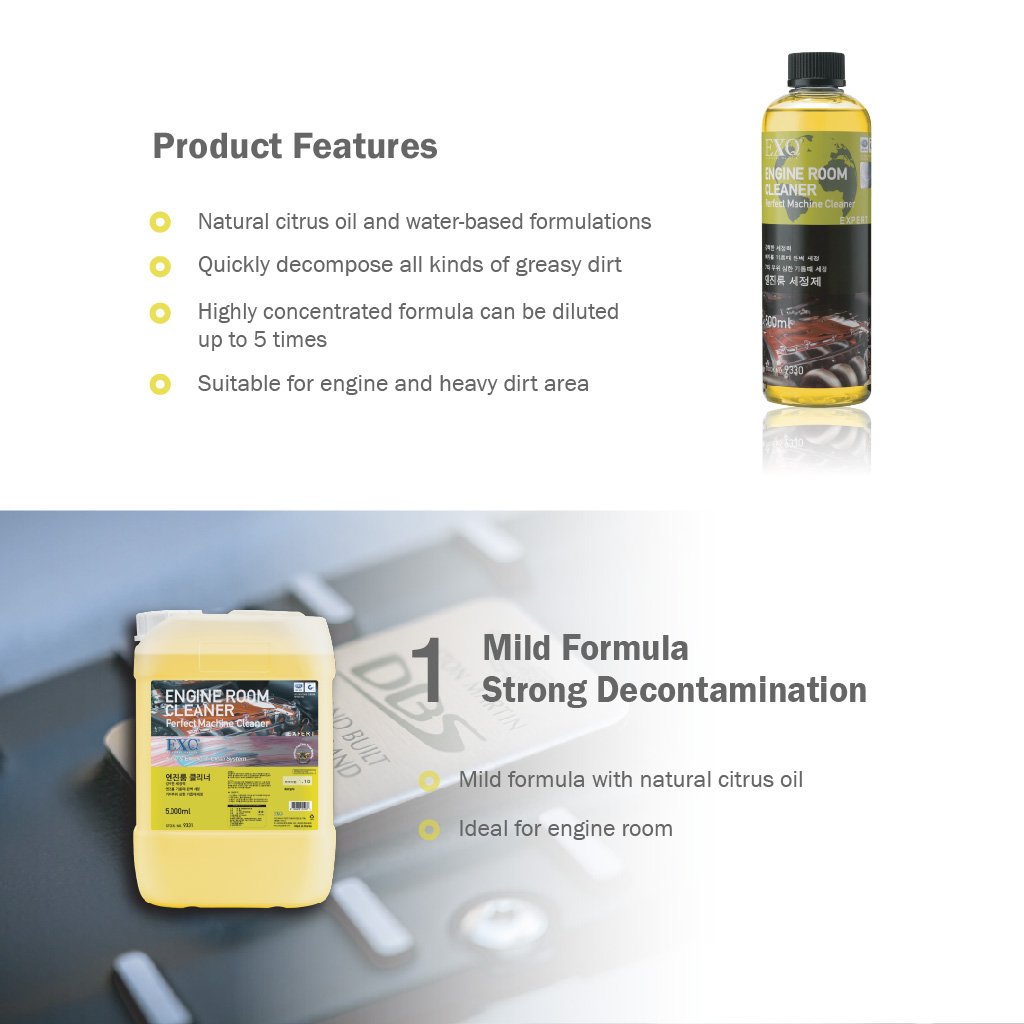 Dầu cam tự nhiên và công thức gốc nước. Nhanh chóng phân hủy mọi loại bụi bẩn dầu mỡ. Công thức đậm đặc cao. Phù hợp cho động cơ và khu vực bám bẩn nặng. Không cần chà xát, dễ dàng làm sạch