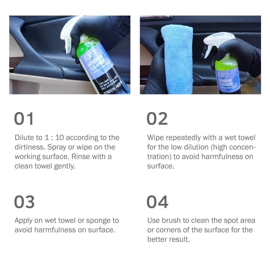 Công thức không dung môi. Bảo vệ khỏi lão hóa, tia UV và tĩnh điện. Không dính, ít bọt, không để lại cặn, không gây kích ứng mũi, không mùi tồn dư, an toàn cho da tay và ghế da. Có tác dụng kháng khuẩn và khử mùi.