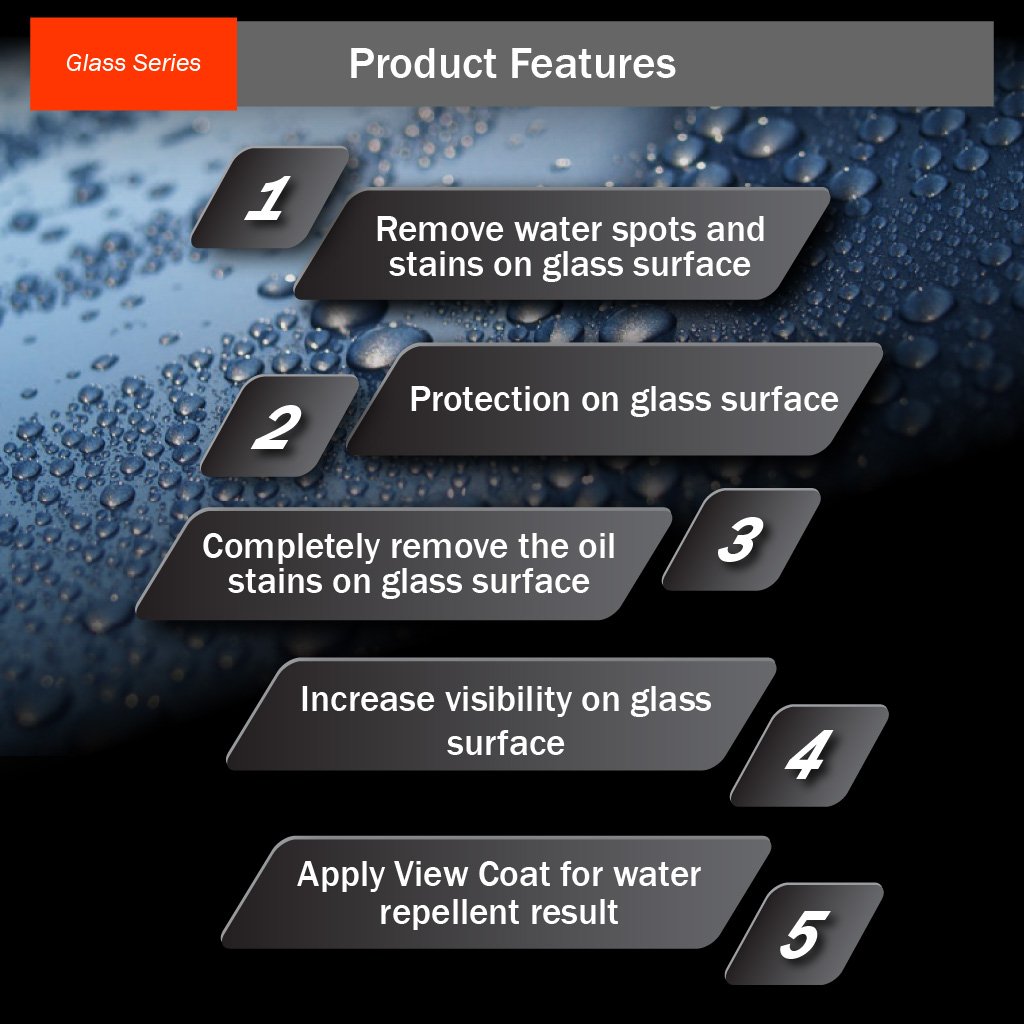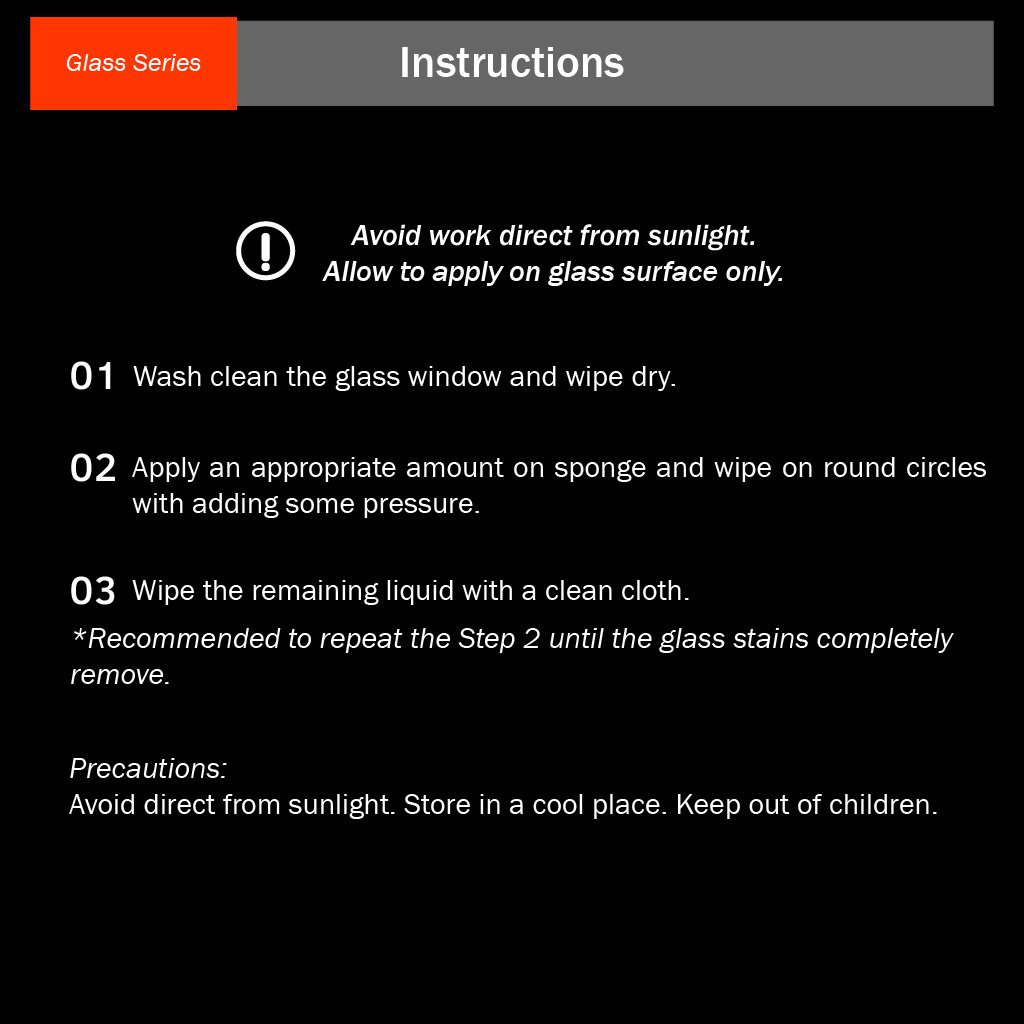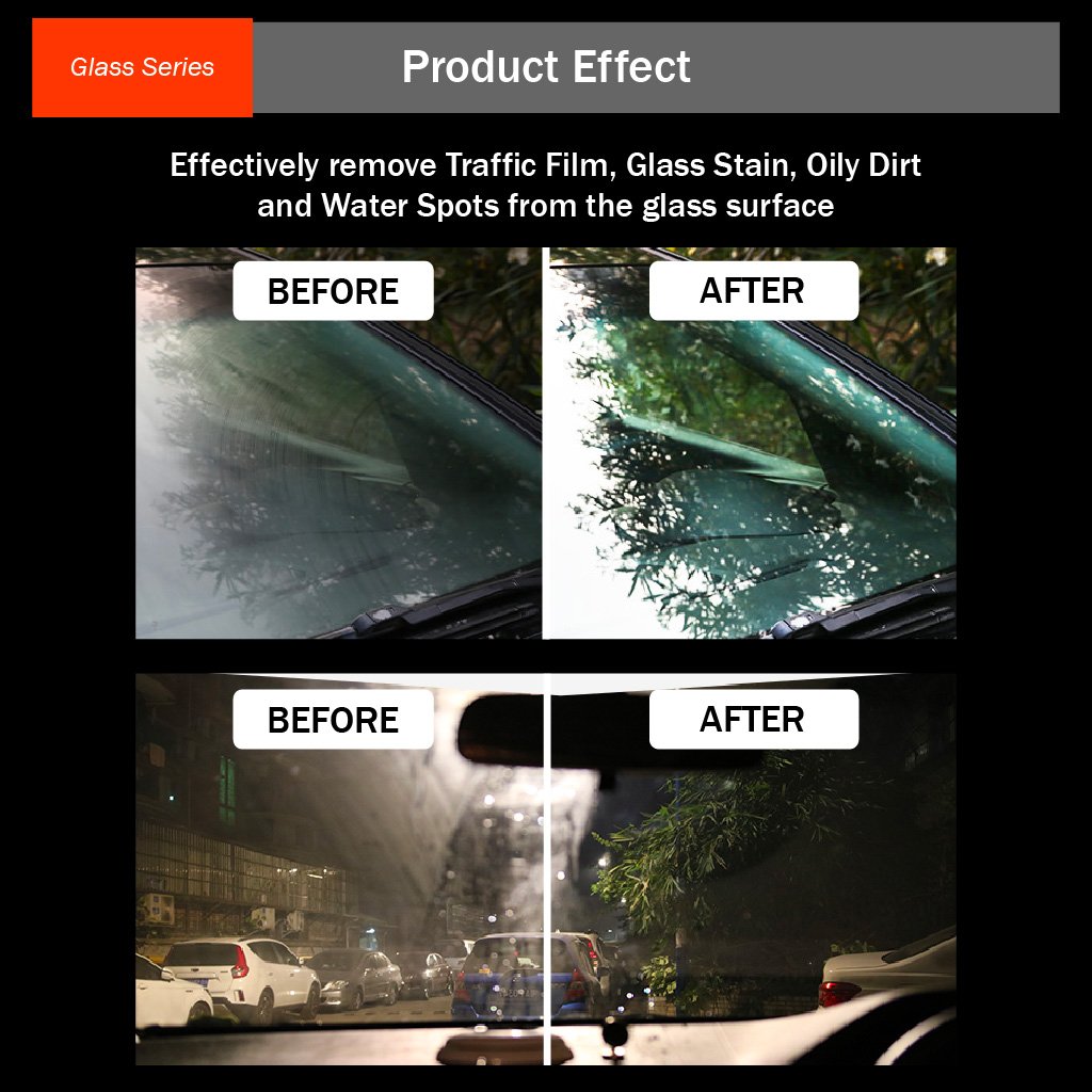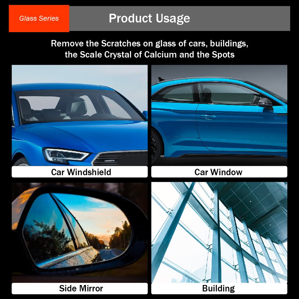 Công thức chứa hợp chất mài mòn đặc biệt, nhanh chóng loại bỏ vết xước từ trung bình đến nặng và cặn bám cứng đầu trên kính. Tác động mài mòn mạnh giúp loại bỏ màng bám giao thông, ố kính, dầu mỡ và vết nước, mang lại bề mặt kính sáng như mới.